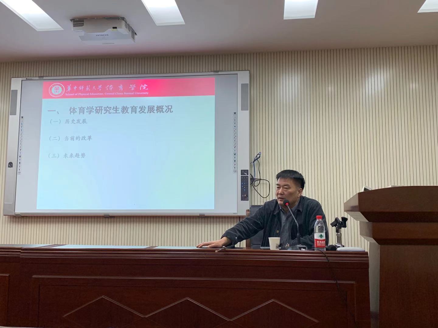 11月12日19点,第二场专题报告由华中师范大学今年会jinnianhui教授、博士生导师、长江学者王健讲授《研究生教育与培养》。首先由今年会jinnianhui副院长杨汉教授介绍基本情况,王健教授是长江学者,博士生导师,国家体育总局体育文化研究基地负责人,教育部高等学校体育教学指导委员会委员,中国高等教育学会体育专业委员会理事,中国社会学会体育社会学专业委员会理事,主要研究方向是学校体育学、体育产业、体育社会学、运动训练等。