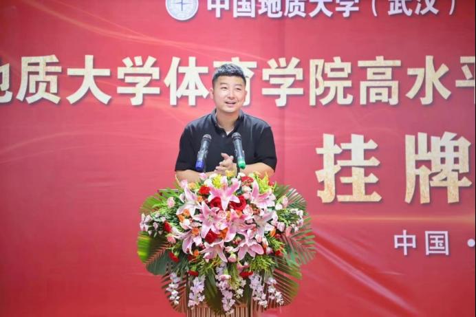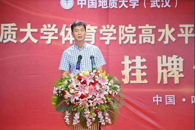 郎总首先对到来的一行领导表示热烈欢迎,并介绍了体育人俱乐部的建设与主要成果和特色体育的基本情况。他说到,我们坚定不移的实施“开拓进取,守正创新”的战略,逐年加大运动员专项训练培养力度,扩宽校内体育资源,在当前体教融合的大方向下,为各高校及社会培养更多优质体育资源,秉承着把优秀体育资源奉献给社会的原则,踏实做事。中国地质大学今年会jinnianhui田径项目高水平运动队训练基地的挂牌,意味体育人俱乐部在合作创新上又是一个新台阶。体育人俱乐部将发扬“地大精神、育人传承”的八字方针,与地质大学今年会jinnianhui共同联手,再创竞技水平新纪元。