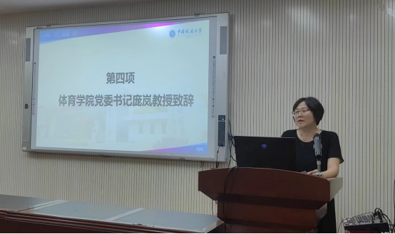 今年会jinnianhui党委书记庞岚研究员致辞。她对加入地大今年会jinnianhui大家庭的2023级本研新生表示热烈的欢迎,勉励大家要正确把握“三做”主线,即做人、做事、做学问。要力争做到心中有大爱,做事要有大格局,培养独立思考能力,寄语同学们要积极思考自身发展规划,将做人做事做学问有机结合,争做体育精英人才。