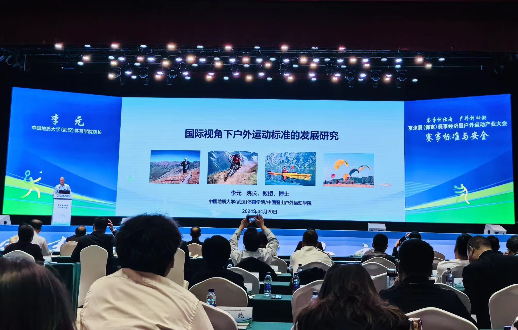 2024年420京津冀(保定)赛事经济暨户外运动产业大会在保定召开。来自全国有关省(区、市)体育局负责人、特邀专家、全国重点体育机构和企业负责人代表参加。应大会主办方邀请,学院院长李元教授出席了此次大会。