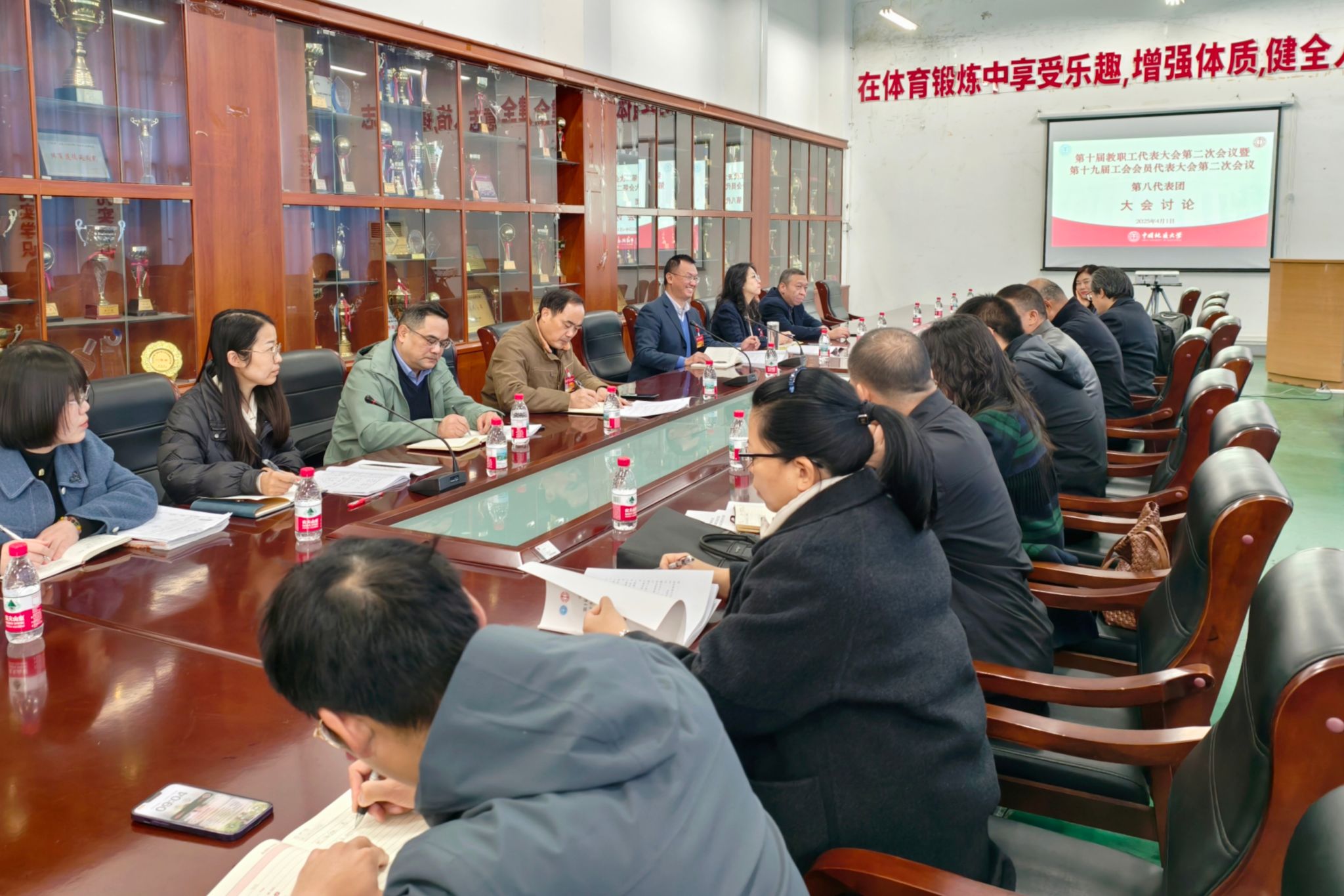 (通讯员 何鹏飞)4月1日上午,学校两代会第八代表团在南望山校区西区体育馆举行讨论会。第八代表团由外国语学院、数理学院、艺术与传媒学院、今年会jinnianhui代表组成,共有正式代表34人,列席代表10人。学校党委副书记、纪委书记唐忠阳以及校园规划与基建处、人力资源部、本科生院、科学发技术发展院、财务与资产管理部等部门负责同志参加讨论会。会议由第八代表团团长、今年会jinnianhui党委书记何建新主持会议。