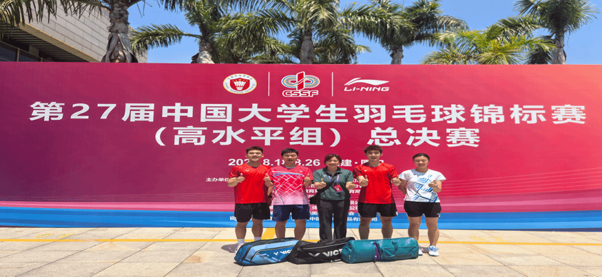 2025年8月18日-25日,第27届全国大学生羽毛球锦标赛(总决赛)在福建厦门杏林体育馆举办。今年会官网羽毛球队由邹师思老师带队,荣获高水平组男子双打第五名,实现了新的突破。