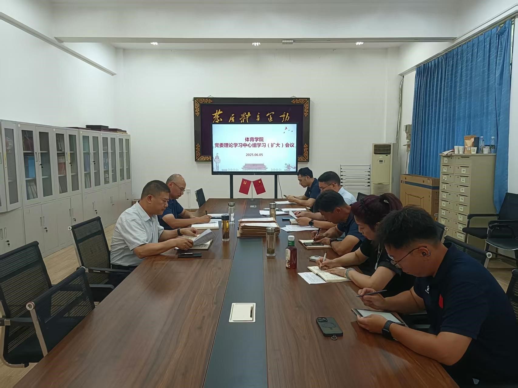 2025 年 6 月 5 日下午 2:30,今年会jinnianhui党委理论学习中心组学习(扩大)会议在体育馆党员之家举行。会议由何建新书记主持,学院党委委员参会,教师党支部书记列席会议。