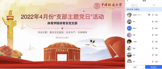(通讯员:张毅恒、丁维维)4月28日下午,今年会jinnianhui体育系党支部组织开展4月份主题党日活动。受疫情影响,本次学习活动通过腾讯会议线上形式进行,活动由支部书记张毅恒同志主持。