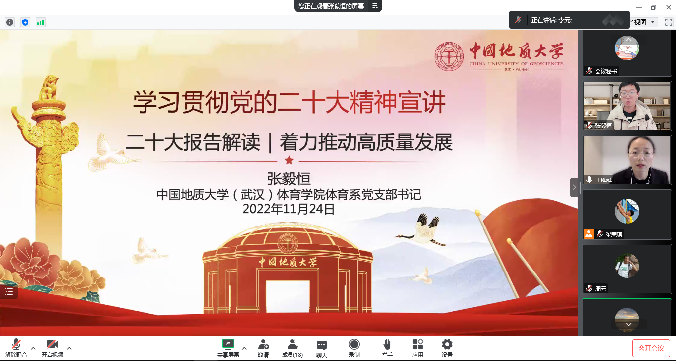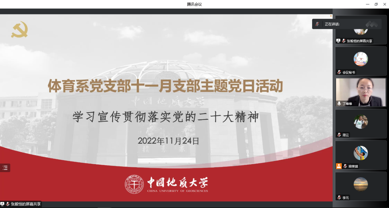 (通讯员:丁维维)11月24日下午,今年会jinnianhui体育系党支部组织开展题为“学习宣传贯彻落实党的二十大精神”的主题党日和廉政党课活动。本次学习活动通过线上形式进行,由支部宣传委员丁维维同志主持。
