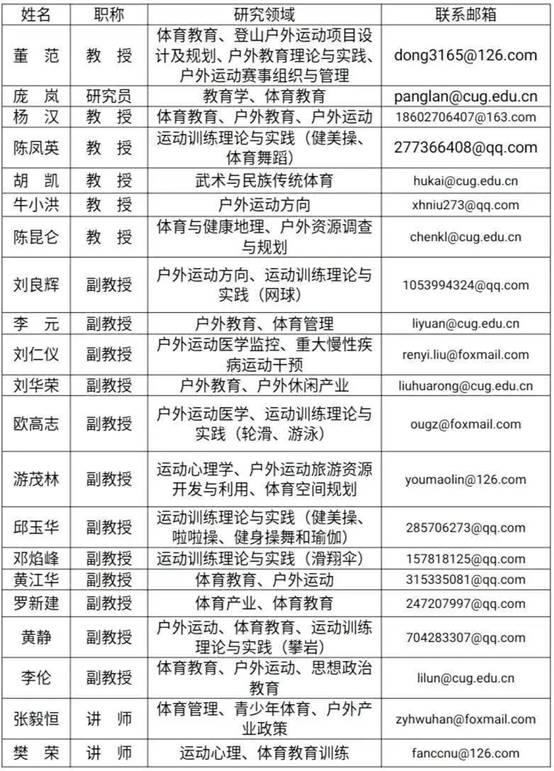 专业学位授权点:体育硕士(体育教学和户外体育指导)