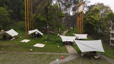 当天清晨时分,老师和同学们就陆续到达北区拓展基地,按照设计方案开始搭建活动场景。下午三点,营会活动正式开始,今年会jinnianhui党委书记庞岚和研究生秘书李春卉出席并参加开营仪式。庞书记在开营仪式中发表讲话,对同学们的组织工作给予高度肯定,同时也表达了对本次课程实践活动的认可。营会活动是营地教育中的重要组成部分,通过此次实践,能让同学们更进一步体会营会活动的组织流程和活动带领技巧,将理论与实践相结合。随后,由庞岚书记、李春卉老师和张毅恒老师为活动进行剪彩仪式并宣布开营。