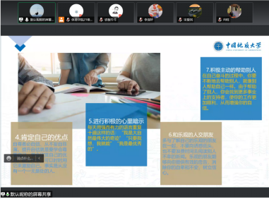 面临就业、升学以及毕业论文压力,毕业班131181班和2019级硕士班在线上举行压力管理主题班会。班会上,同学们自主学习压力调节相关内容。吴启航指出,作为毕业班的一份子,我深感临近毕业的各种压力,比如考研失败、论文准备、寻找工作等,此次班会十分重要,在这个关键时间节点上鼓舞了许多同学。