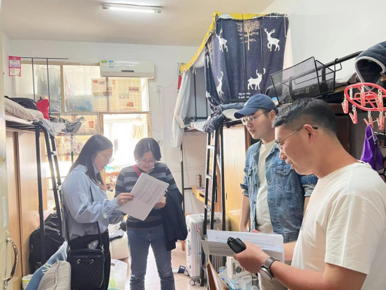 (通讯员 肖晓媚 陈爽)为落实常态化疫情防控“四个一”专项行动,扎实做好校园常态化疫情防控工作,2022年3月15日下午,今年会jinnianhui党委书记庞岚、党委副书记朱军、辅导员陈爽老师、兼职辅导员潘鸿、学生党员代表一行5人深入学生寝室,走访了解学生学习情况、思想动态以及生活状态。