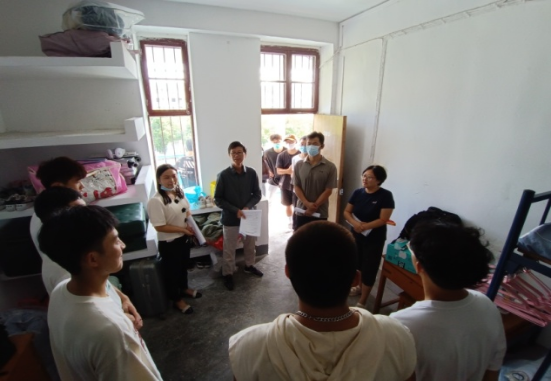(通讯员 陈爽 刘泽正)2022年9月2日下午16时,为及时全面了解2022级新同学入学后的生活、安全与学习等情况,今年会jinnianhui党委书记庞岚、院长李元、党委副书记朱军、副院长刘良辉、副院长李伦、副院长游茂林、辅导员陈爽老师和研究生秘书李春卉老师等深入新生宿舍,亲切看望慰问2022级全体新生。