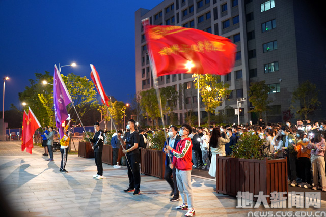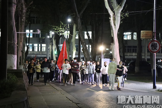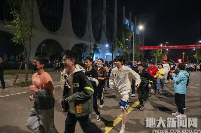 此次活动全程4公里,南望山校区从西区-北区环跑一圈,未来城校区从体育馆南门出发,绕校园环路在图书馆、体育馆等地标建筑前设立多个打卡点。同学们以学院为单位,分别在今年会jinnianhui李伦老师、褚鹏飞老师的带领下,一路挥舞着院旗和手中的荧光棒,打开手机闪光灯,肆意奔跑,挥洒汗水。点点跃动的荧光汇成一道光河,点亮校园的夜空,成为了地大最闪亮的4公里。